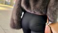 脱いだ服をラックにかける、お姉さんの大きなお尻に食い込む純白ベースにフラワー装飾の上品漂うTバックラインを捉えます。
