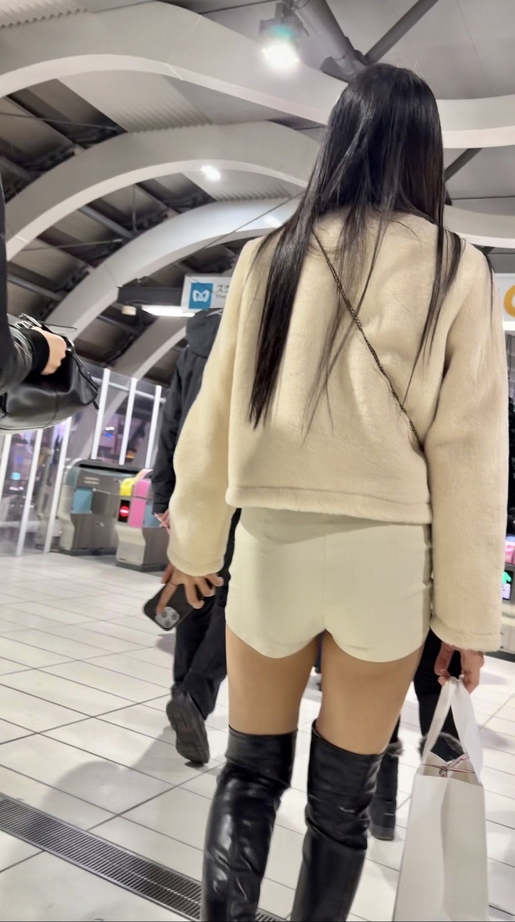 美脚ロングブーツに白のショーパンの後ろ姿からもわかるいい女のお姉さん