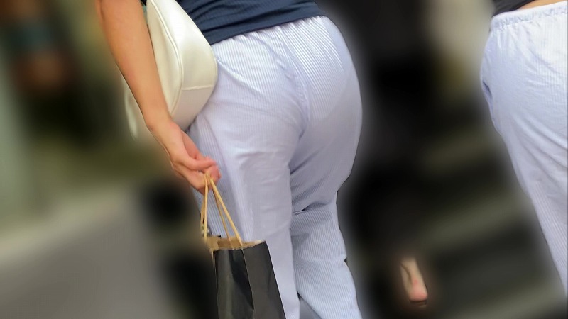 撮影は全編後ろ姿での平面と坂の歩行シーンと、階段を上るカットを収録。特に坂と階段は、テロテロなパンツから浮きがるPラインもばっちり映っております。パンツも中で揺れ動くお尻も最高です(/ω\)