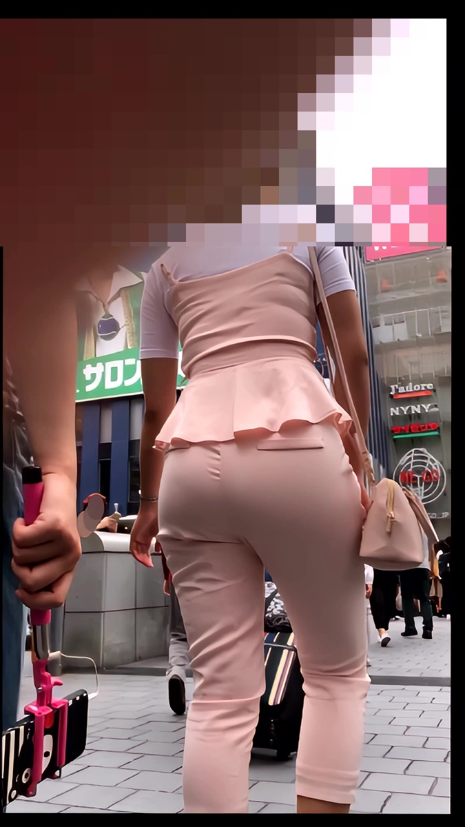 ピンクのセットアップでまとめたおしゃれなお姉さんです。ただし、かなりのパツパツ具合でエロさが勝っていました。