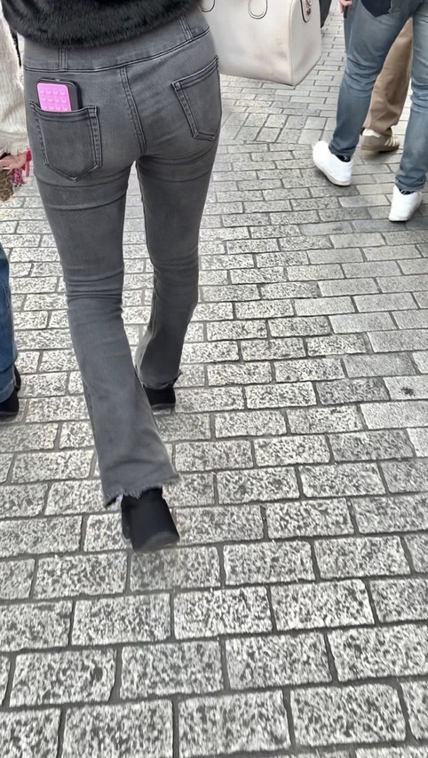2人目(表題)はグレーのハイウエストデニムにブーツコーデののお姉さん!