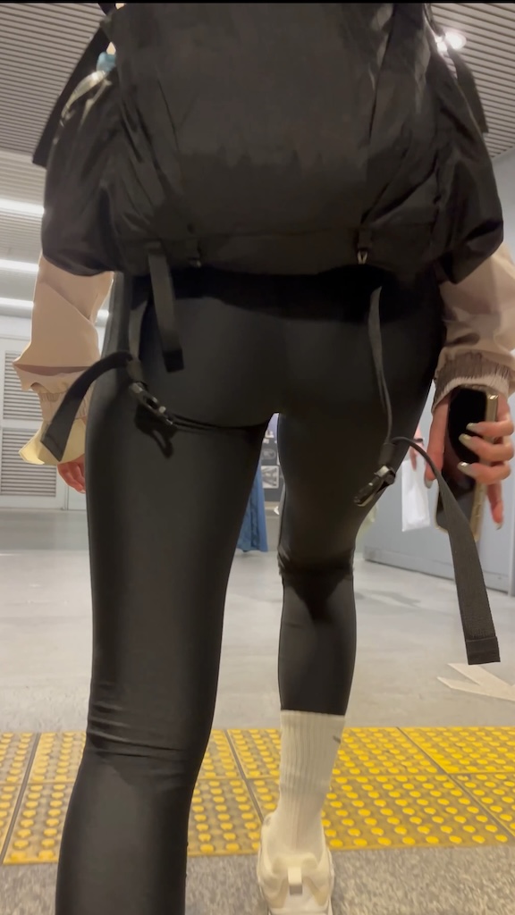 大胆にお尻を突き出し荷物をしまう。