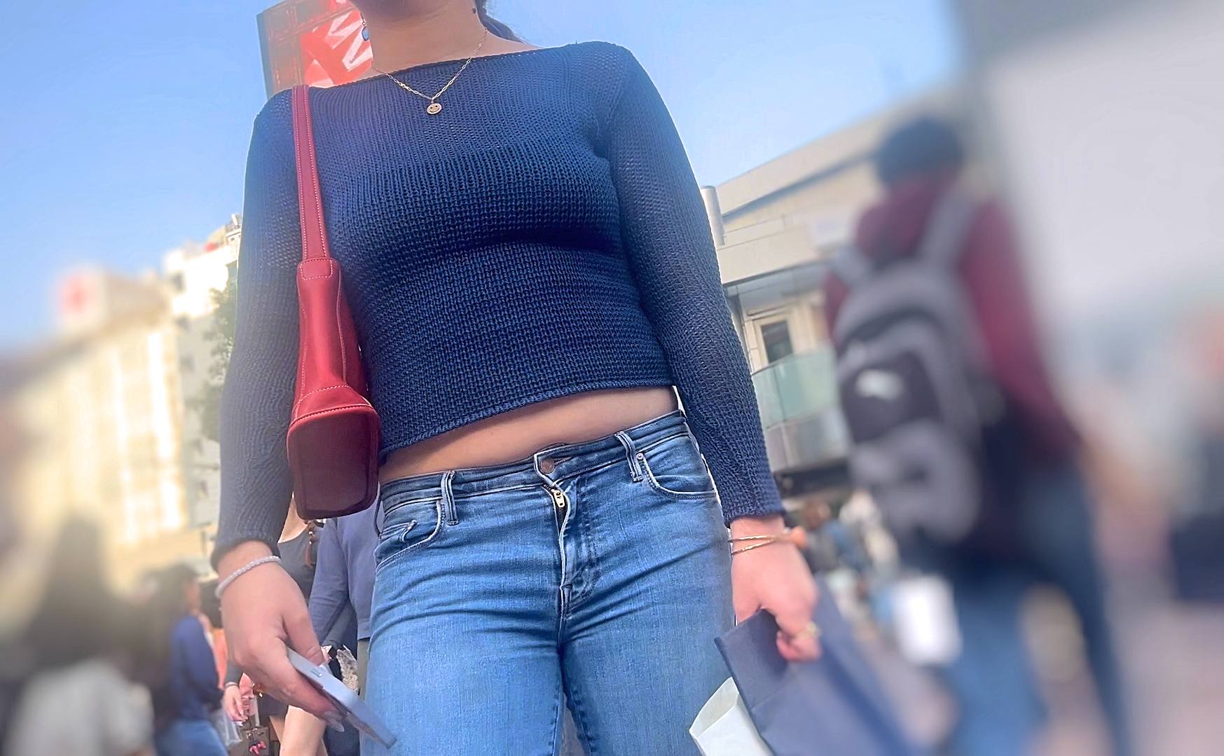 まずは、スキニージーンズと色白ムッチリエロボディがイヤらしいお姉さんが登場。