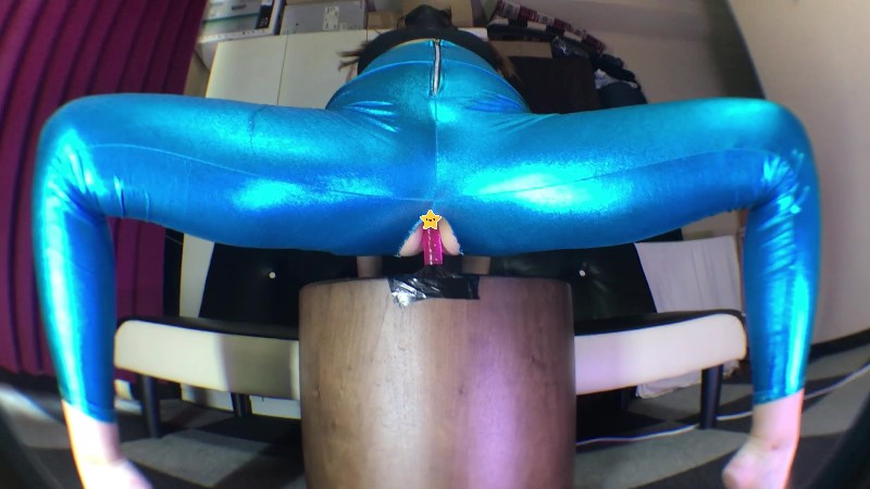 ・穴が開いたメタリックレギンスを履いて、杭打ちピストンケツ穴ディルドアナニー!!