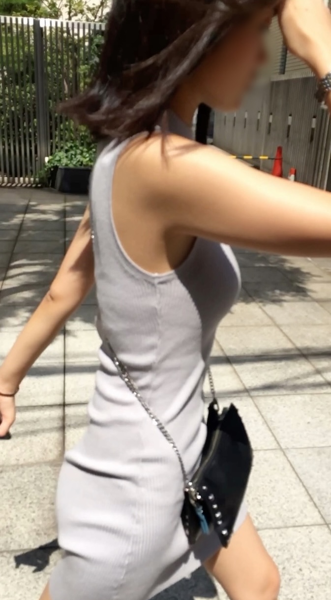ミニ丈タイトワンピース姿