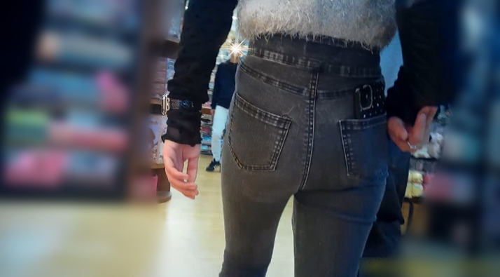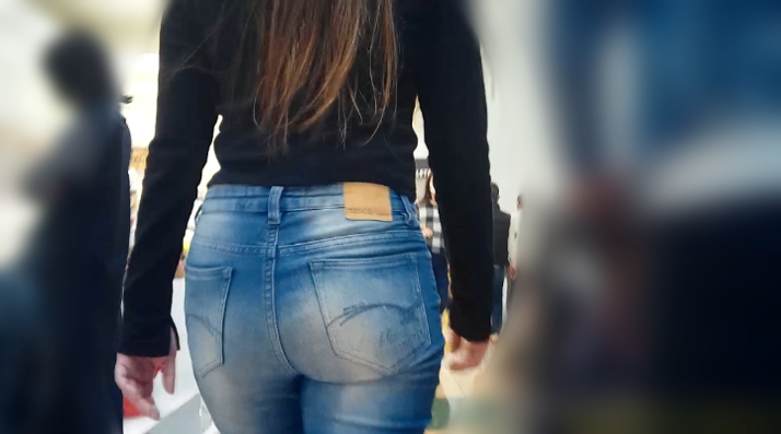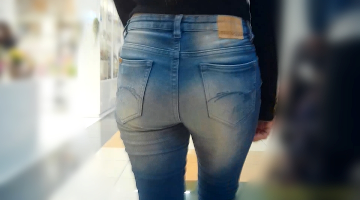モッコリタイプのお尻がピタめのブラックデニムに密着してます。