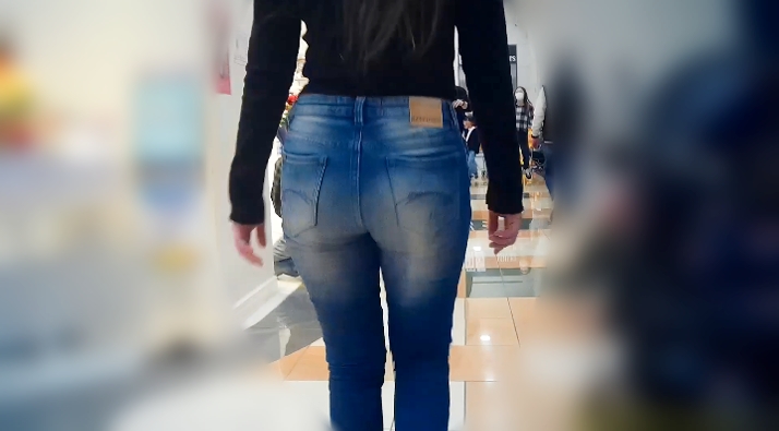 派手なギャルのスキニーデニム歩行は最高に魅力的ですね。