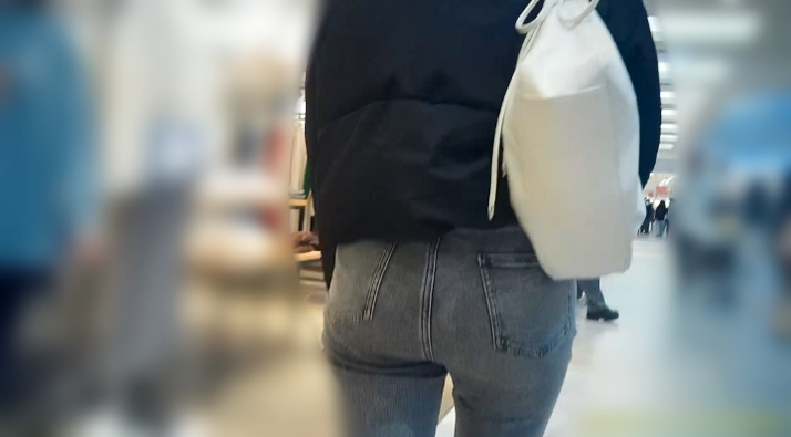 2人目、ピタめのブラックデニム美人女子大生20代前半です。