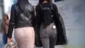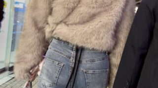 ふっくらしたお尻にピタッと張り付くレザーパンツがいい感じ!