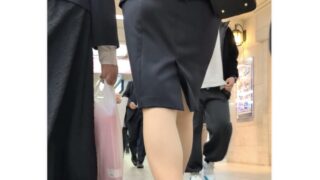 それだけでも興奮シチュエーションですが、黒ストの美脚を堪能・・・そのままカメラをスカートの中へ・・