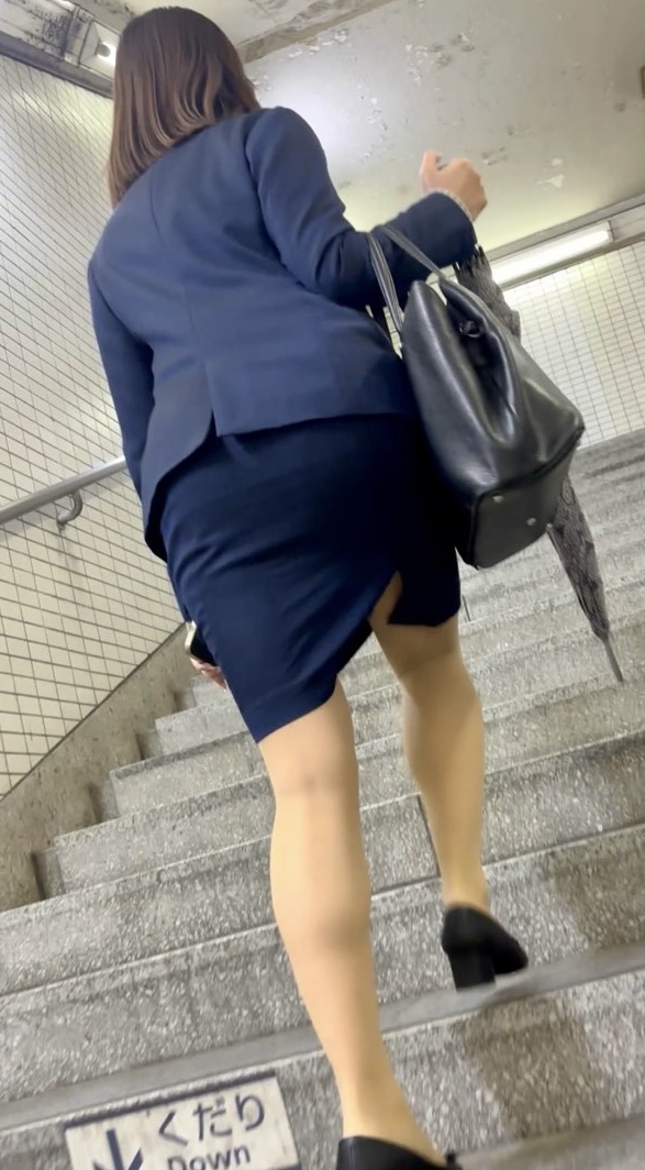 地下鉄を降りる瞬間から駅構内を歩くバックショット、エスカレーターでの立ち姿、さらに極め付けはプリップリのタイトスカートをこれでもかと披露してくれる階段登り!スロー再生での見応え十分かと。