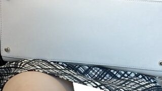 M字開脚でアソコをパンツの上から触られ、感じてしまって腰が動いてしまいます。