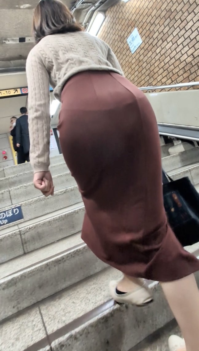 2人目は短めながら鮮烈な歩行を披露するロングタイスカOLさん!プリップリのお尻が階段登りのためにさらに強調されております。ご本人は気にすることなく颯爽と地下通路に消えていきました。