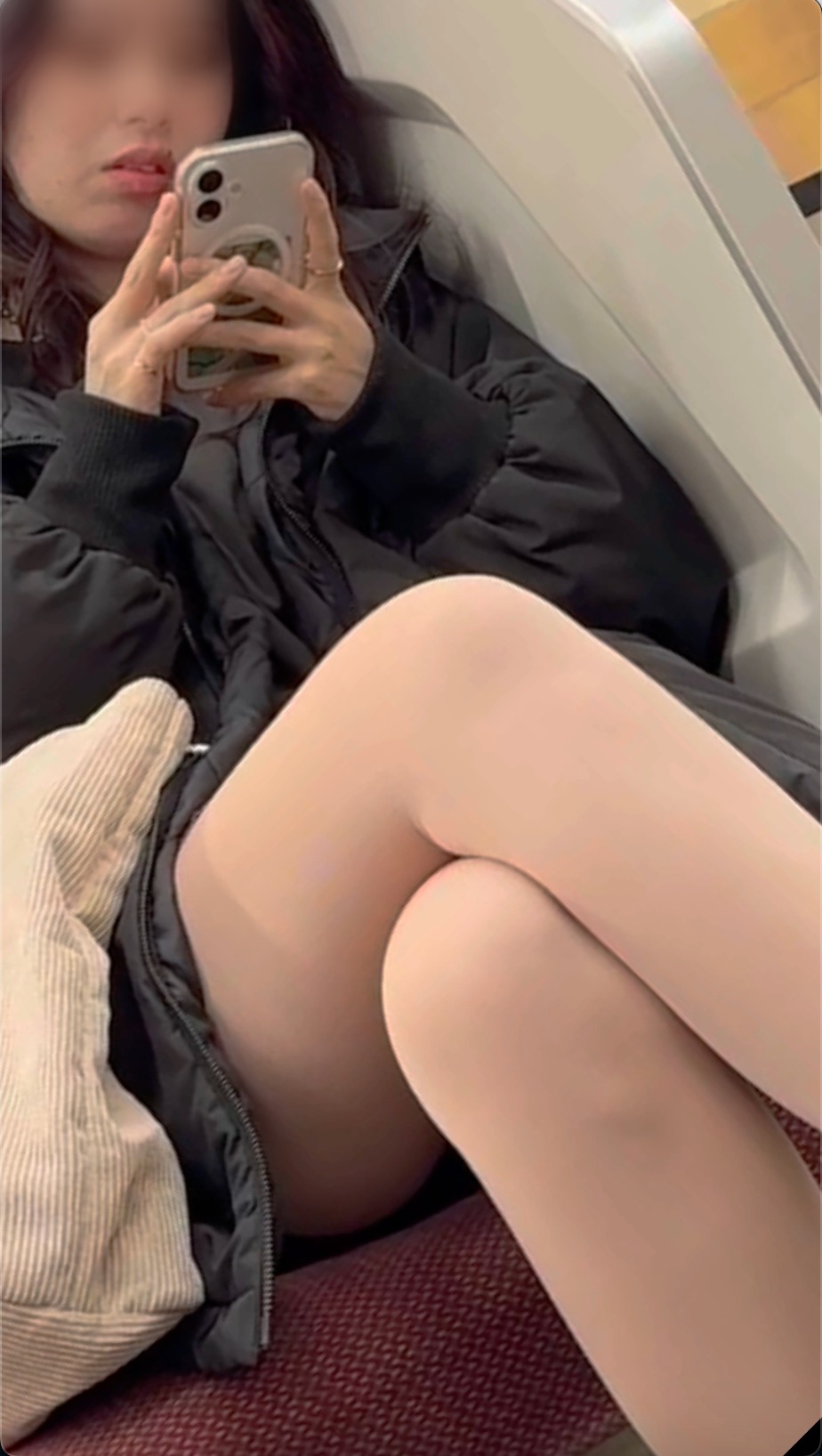 スマホに没頭する彼女が見せる脚組みからの裏太ももを「ちょい横」の絶妙なアングルから徹底的にマークしました。