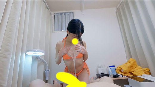 前半はVIO脱毛施術、後半は裏オプのディープマッサージの構成です。乳首、金玉、竿、鼠径部、肛門を、ネットリ施術されます。