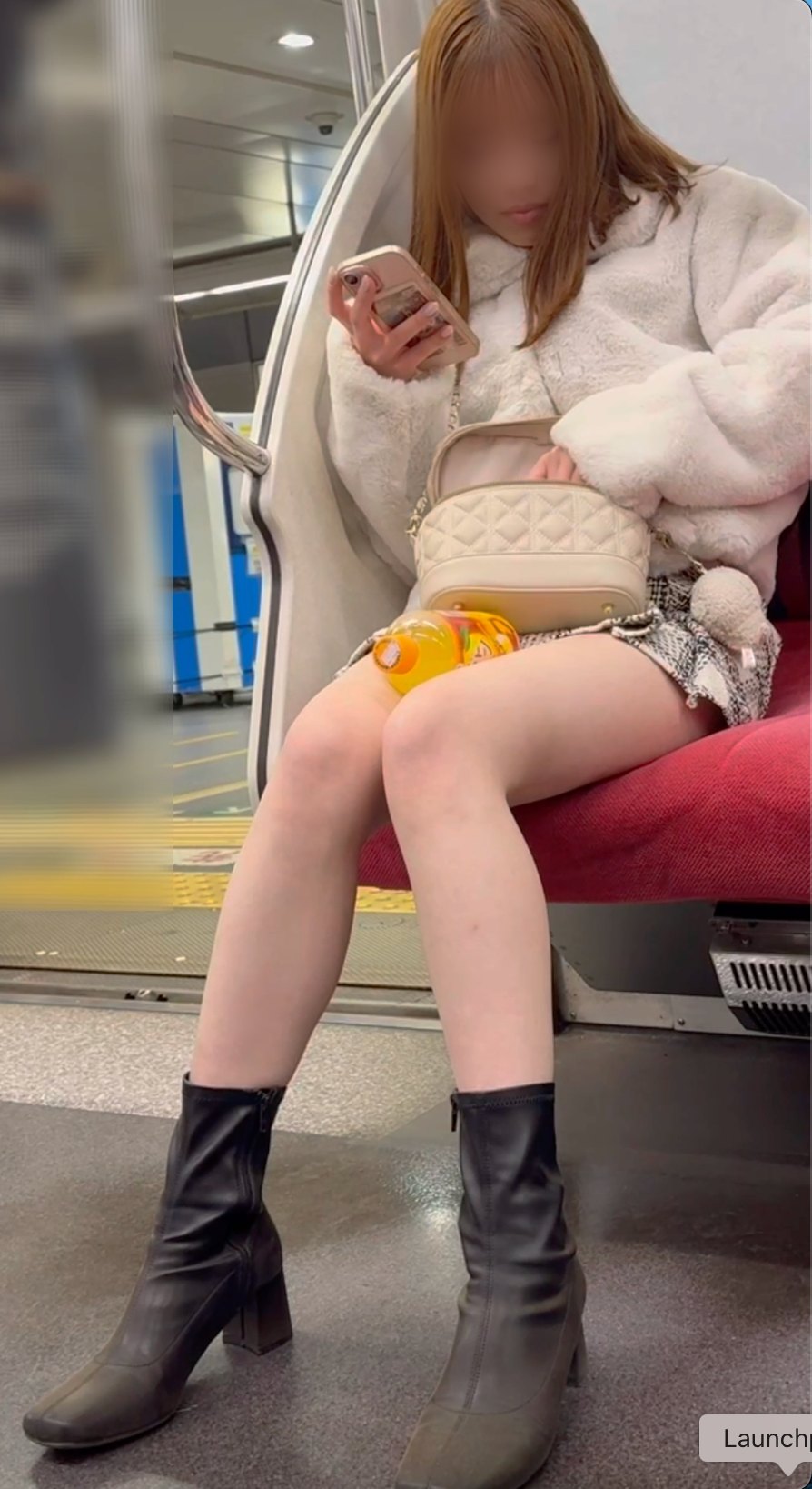 冬の装いの中でも圧倒的な脚線美を隠しきれない、ギャル系S級美人お姉さんです。正面であればあわよくばデルタゾーンが見えたかもしれないです。尺は短いですがミニスカートから露出されたモデルのような生脚が極限まで際立ちます。