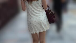 盗撮風・パンチラ・逆さ 【再販】見なきゃ損!テロテロミニスカワンピ姿の茶髪ギャルのパンティー透け透け(動画/ω\)