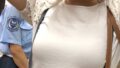 白ニットにチェック柄の可愛いスカートのお姉さんです。