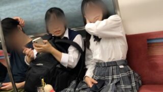 電車待ちではほぼ真下から靴下を直す仕草が見られます★そしてカメラの前にしゃがみ込んでバックレース付きの白パンの質感まで見せてくれています☆