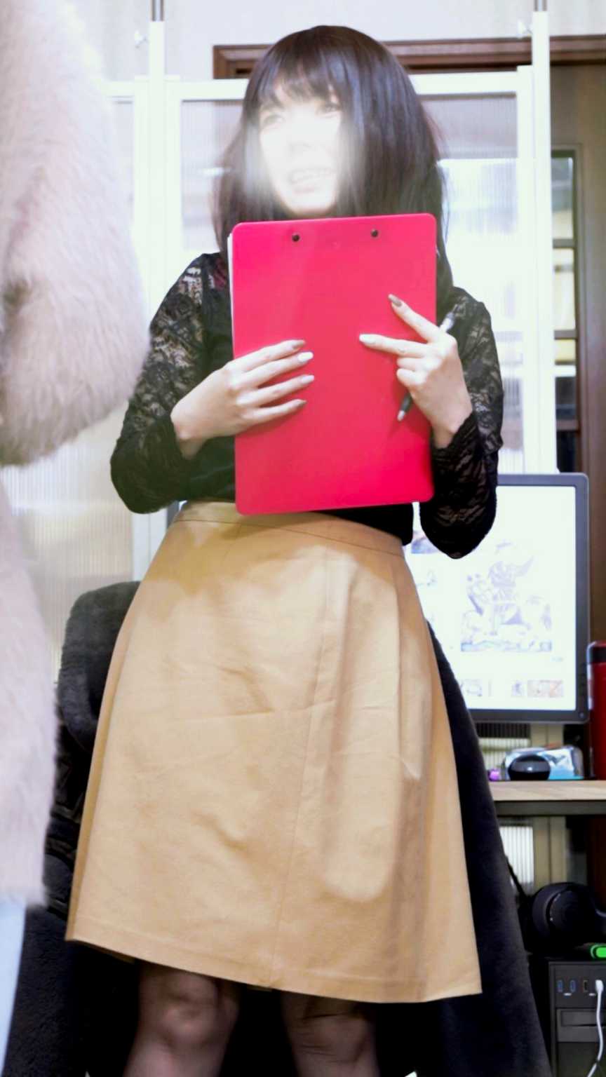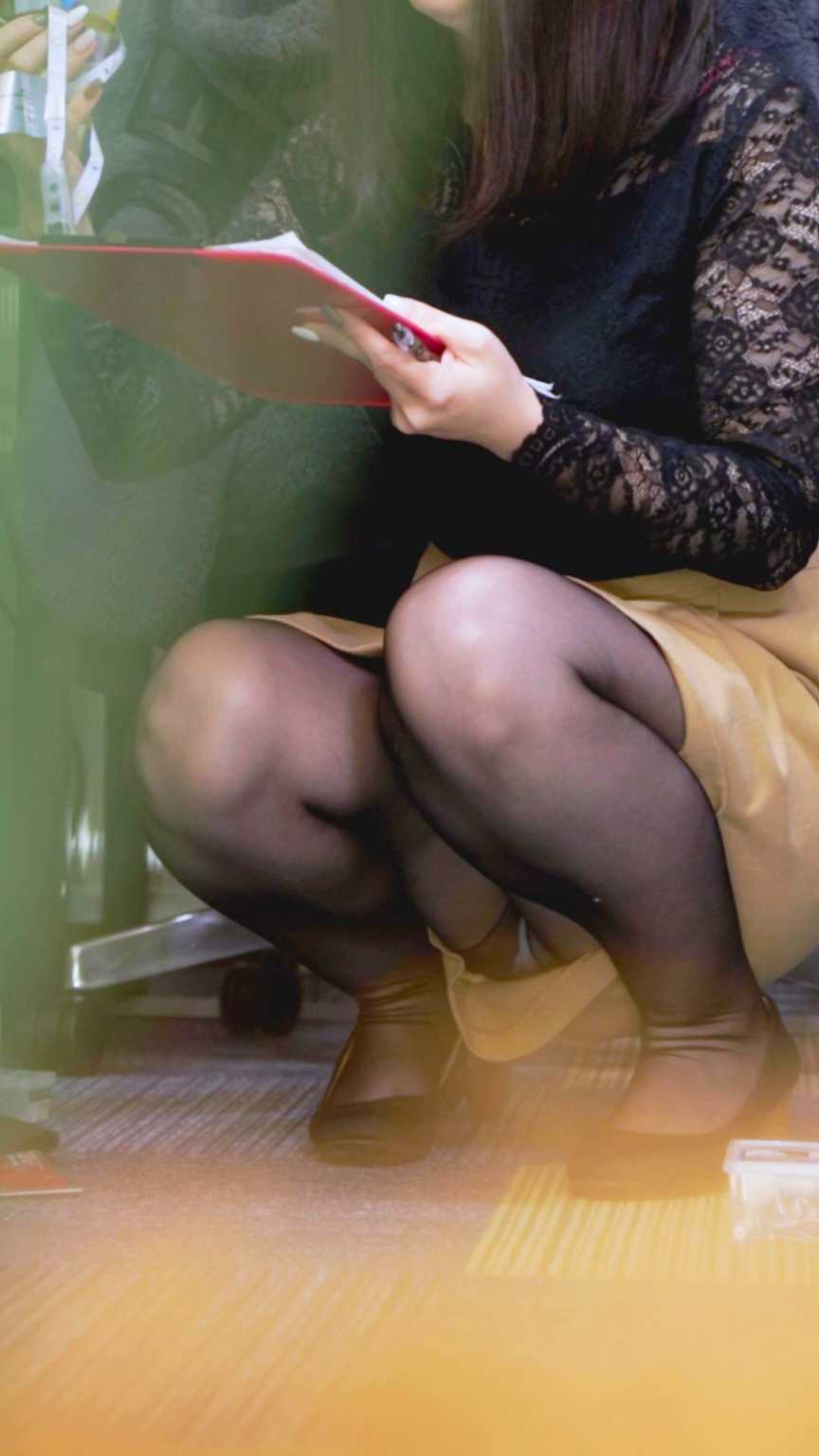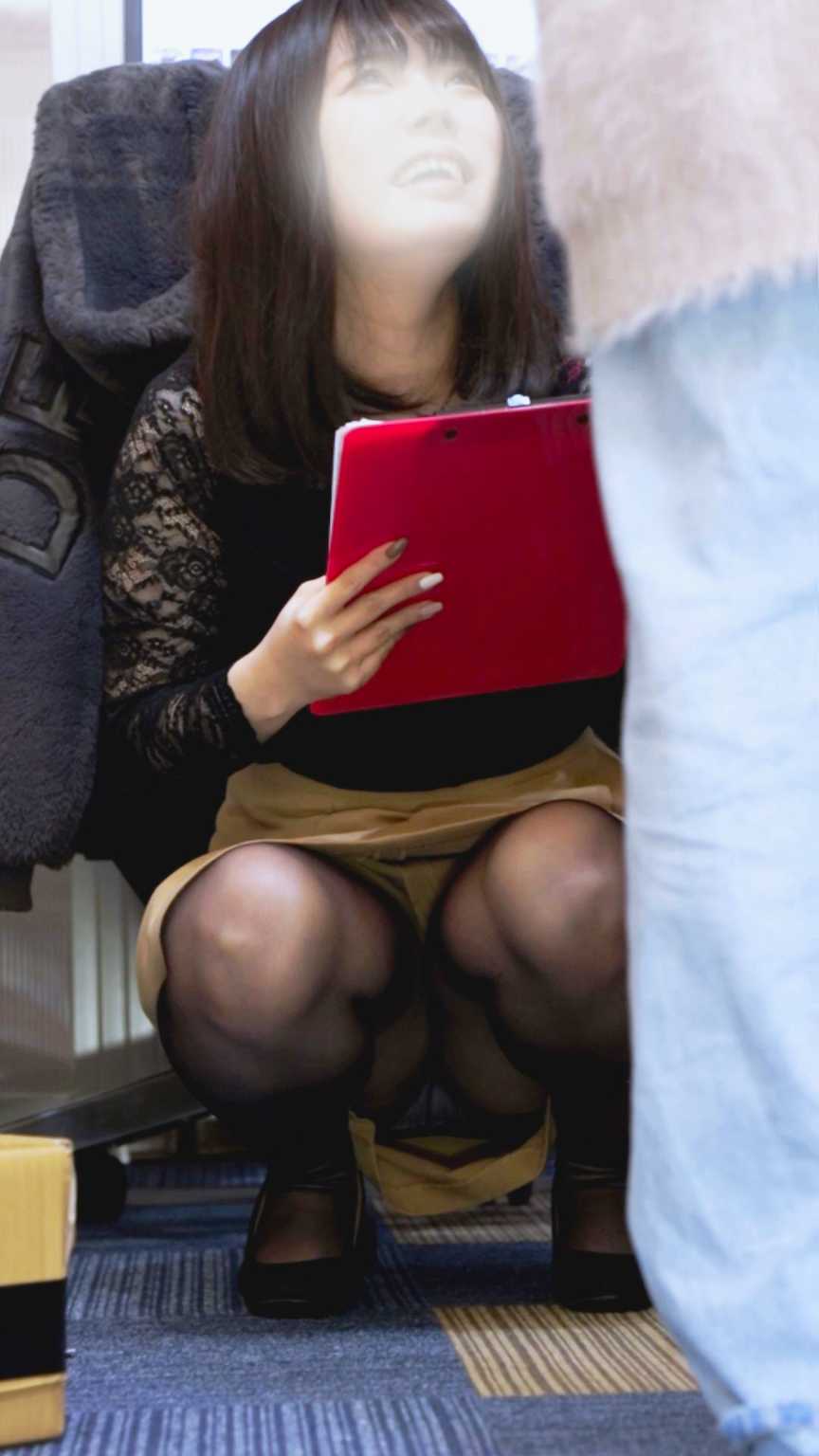 何やら同僚の女性がきたみたいですねぇ・・・人前でも気にせずパンツが見えてしまっています、、、なんだ案外見せたがりさんなんですね!僕も見たがりさんなので相性バッチリです(*ノωノ)