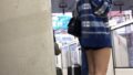 横で作業しているロングヘア女子ちゃんと、作業場を交代します。ミニスカハミでる大きな豊満お尻が見えます。