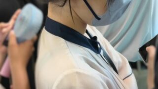 パツパツの胸を強調したトップに両サイド浅めのスリットのスカート。生足で食い込みがはげしくNOパンレベル。エスカレーター時一所懸命にスカート押さえるも間に合わず、両サイドスリットが功を奏した。