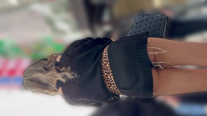 街を歩く金髪ギャルに撮影させていただきました。カットオフデニムに合わせて、ミニワンピースを思いきりコンパクトに着こなす元気いっぱいのギャル。