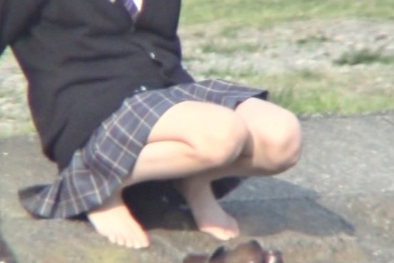 3人組のJ○がスカートをめくり上げてパンチラしたり股間部分を見せている映像になります。