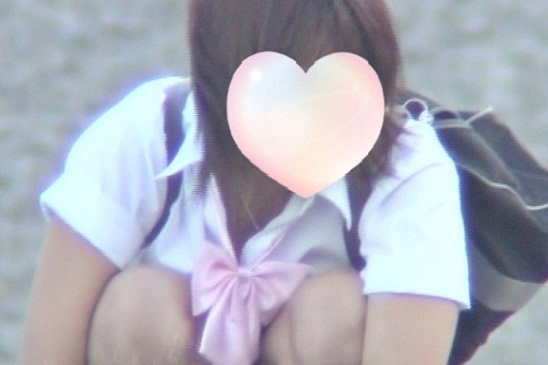 超ミニのスカートを身にまとってるJ○が川沿いで遊びながらパンティーを見せている様子になります。