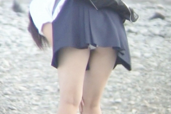 ルーズソックスに超ミニを履いているJ○を最初から最後までずっと映しており強風が常に吹き荒れてる状況なので超ミニのスカートが何度もチラチラとめくれてパンティーが見えております。