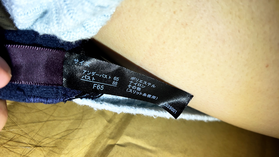 生おっぱいを揉みまくったあと、ブラを捲り乳首を確認すると、先ほどよりも乳首が勃って固くなっていた。彼女を横向きにし、背中のブラホックを外した。そして、ブラのタグを確認してみると、そこにはFと書かれている。やはり予想通りだ。