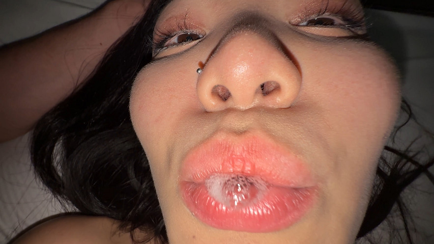 続いて唇に唾液を溜めさせてそれを全部鼻で吸い上げる