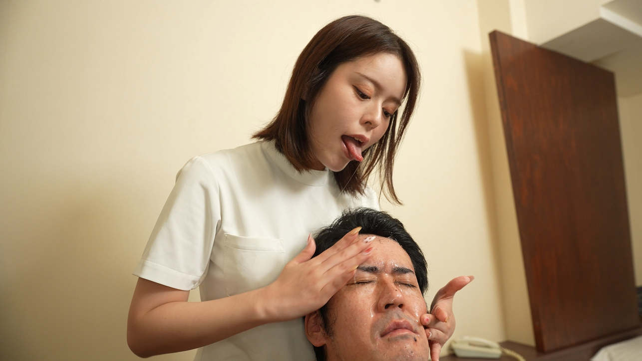おもむろに男性客に口臭を吐きかけます「リラックスして施術をお受けください♥」