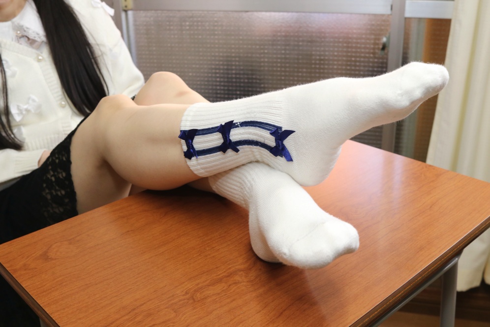 しほさんの白ソックス。青色のリボンがついててガーリーで可愛い。
