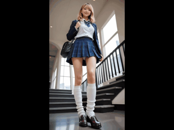 都会的なルーズソックスと超ミニスカート姿で、階段を上り下りするたびに周囲の視線を独占してしまう。