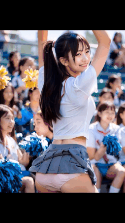風が吹き抜けるたびに緊張が走るが、 彼女は笑顔を崩さず、堂々と演技を続けた。見られているかもしれない不安と、それでも前を向く覚悟が、彼女を強くした。そしてフィニッシュポーズ。