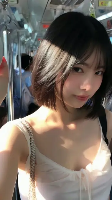 清楚系OLや女子大生風の女性たちが、吊り革に手を添えながら