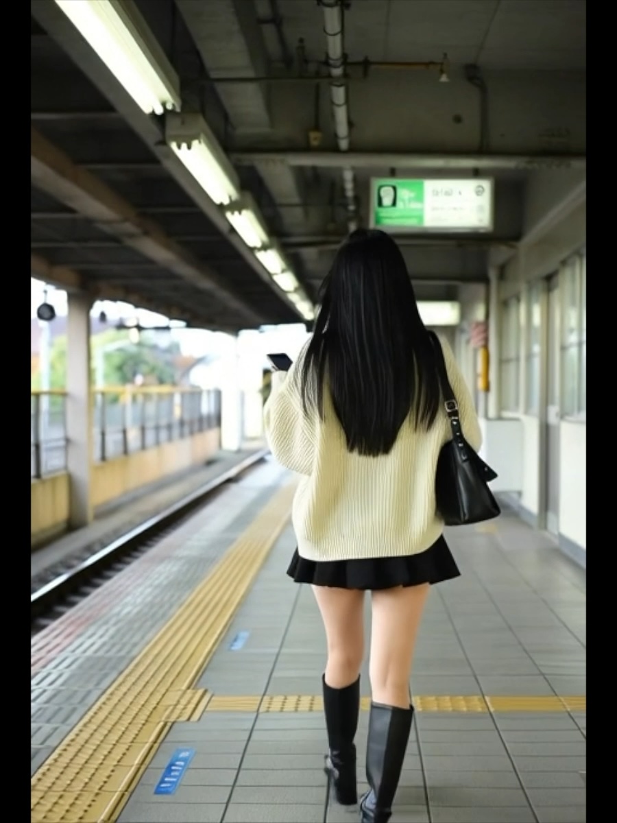 とある駅で見かけた白のニットに黒のプリーツスカートの女子大生。黒いスカートと太もものコントラストがそそります。
