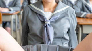 ブラを直す生徒がいたずらっぽく微笑む。