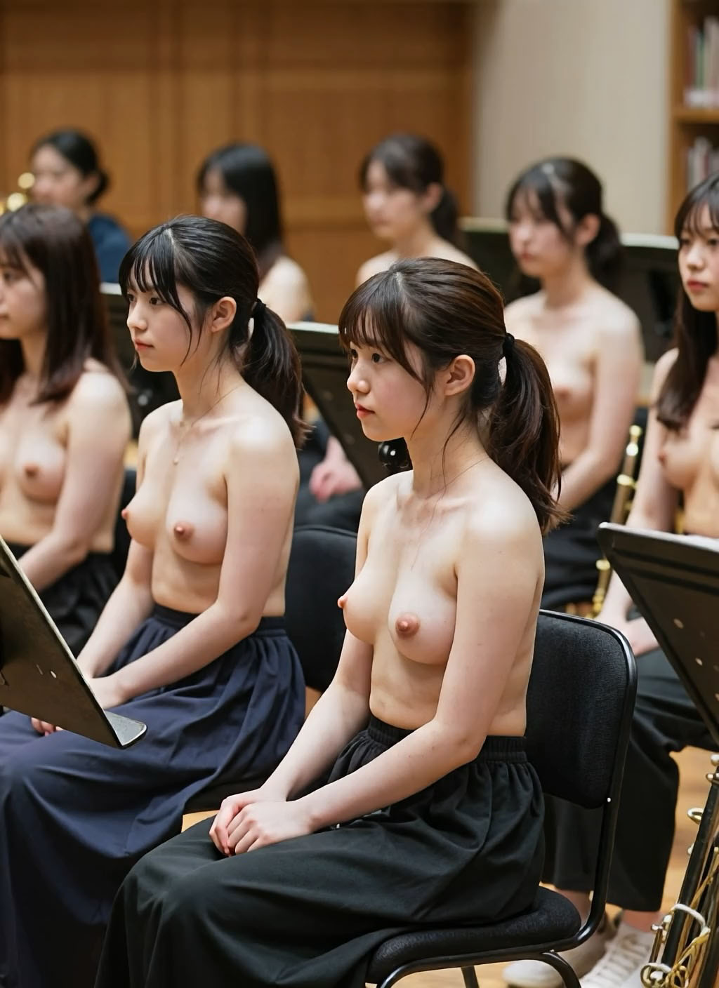 静かな緊張感の中、演奏会は全員トップレスという非日常の姿で始まります。