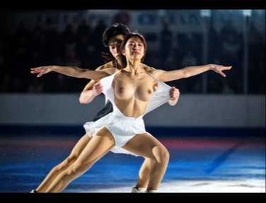 前半の女の子たちは、白色の衣装で、すべりながら白いアンスコをたっぷりと見せてくれます。その後、服を脱ぐ、男の人を挑発します。男の人は我慢できず、胸を揉んだり、アンスコをさわったり、キスをしたりします。後半の女の子たちは、赤いトレーナー等と白のスカートでスケートをします。男性に持ち上げられている子ももいるので、アンスコが丸見えになっています。また、男性が女性の胸を持ったり、アンスコを触ったりして、持ち上げています。また、女性も赤い上着を脱ぐと胸が丸見えになり、きれいな乳首も見せてくれます。それを見た男性は女性の胸を触っています。気持ちよくなっている女性もいます。また、キスをして愛を確かめ合っているペアもいます。