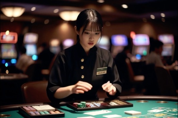彼女たちは、カジノの顔とも言えるプロフェッショナル。 ビシッとした黒のスーツに身を包み、真剣な表情でカードを配り、ゲームをリードします。