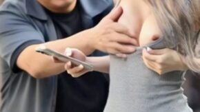 AI画像・CG画像 【動画】豊胸キャバ嬢がノーブラ散歩でおっぱい露出して揉み逃げされた奇跡の一瞬!