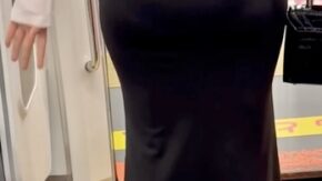 フェチ・巨乳・お尻・美脚 【秘め事OLの試着室】入室30秒で全裸!たわわ乳房を揉みしだく