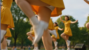 AI画像・CG画像 【AI動画】ある黄色い衣装の鼓笛隊の一日(後篇)・押し相撲やステージ等で白アンスコ丸見え