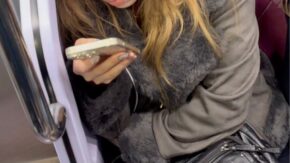 店員・OL・働く女性 【再販】S級美人お姉さんの脚組みパンスト美脚!真上・真横からの密着撮