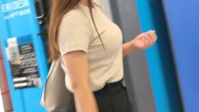 盗撮風・パンチラ・逆さ 【横からの眺め388】エロエロボディのOLのGカップバウンドに釘付け!!