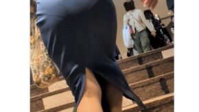店員・OL・働く女性 【514】ブルーのロングタイトスカートOLさんの歩行バックショット!