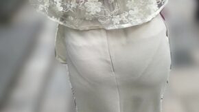 店員・OL・働く女性 【再販】純白透けパン美人OLお姉さんのマン筋浮かぶパンチラ