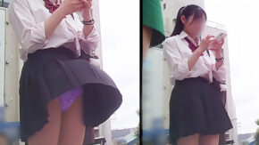 制服女子 【フロント風チラ】優等生風ポニテ制服JKは履いてるPも偏差値が高かった!?